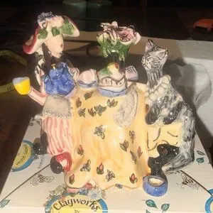 Clayworks by Heather Goldminc Presented By Blue Sky Whimsical Tea Party Figurine