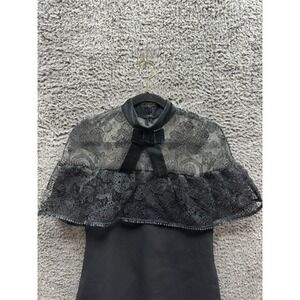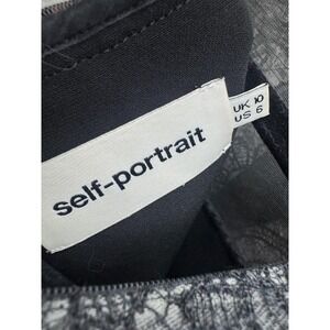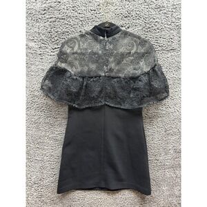 Self-Portrait Lace & Bow Accent Mock Neck Mini Shift Dress Black Womens Size 6