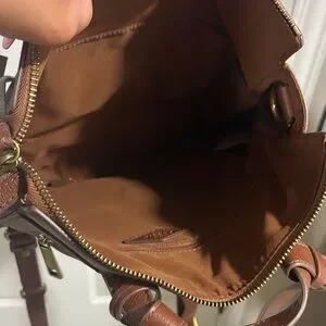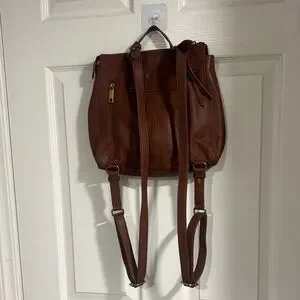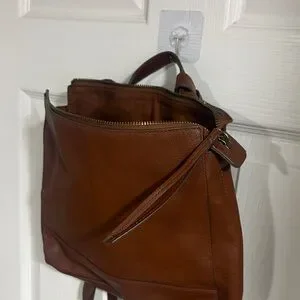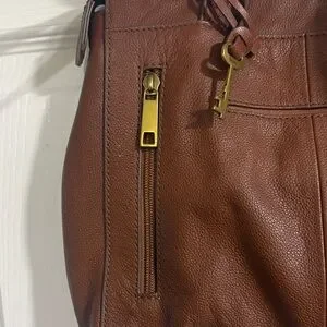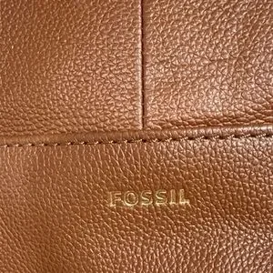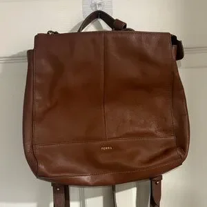 Elegant Fossil backpack in tan leather. Ideal for daily adventures. Features adjustable straps and top handle.