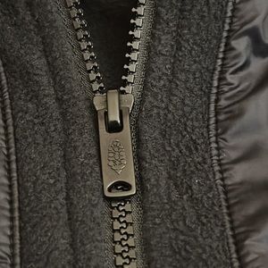 Features: Hooded neckline with drawstrings, front-zip closure, pockets at waist and sleeves, soft knit piecing, cotton band and sleeve cuffs