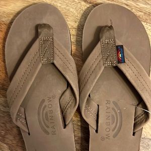 Rainbow wide strap flip flops dark brown