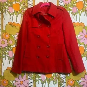 Red Wool Blend Pea Coat