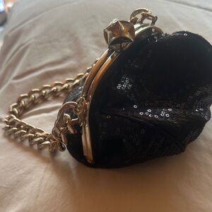 Betsey Johnson Black Sequin Heart Clutch with Gold Chain