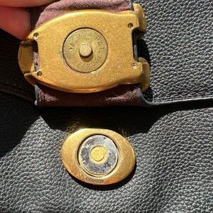 Gently used, with some signs of wear. No stains or odors, and it is very clean inside and out. The only issue is that the magnet behind the logo clasp is missing, so it no longer snaps shut magnetically. The flap still rests normally and it doesn’t affect the look or functionality.