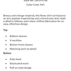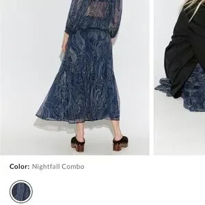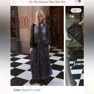 New Free People top and skirt set. Semi-sheer top, lined and smocked waist skirt.
