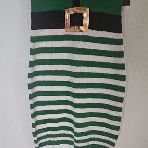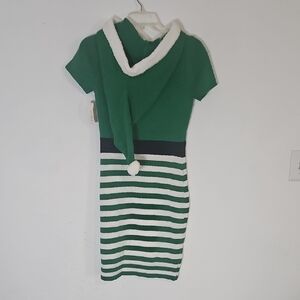 Ugly CHRISTMAS No Boundaries Holiday Green and White Striped Elf Dress Sz XS (1)