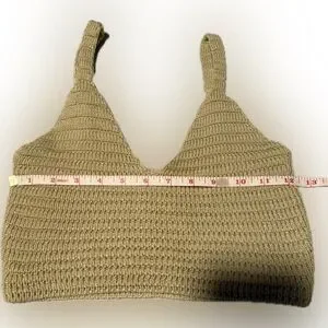 Stylish beige knit tank top with a textured design. Perfect for casual wear.