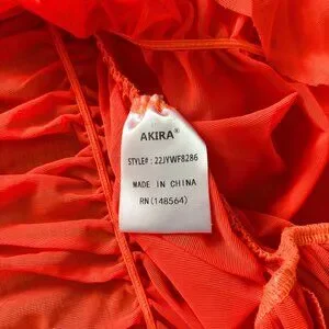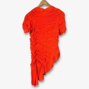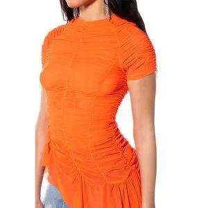 AKIRA Rory Ruched Mesh Asymmetrical Short Sleeve T-shirt Orange Womens Large Y2K
