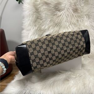 🔥SOLD🔥Authentic Gucci Beige GG Supreme Canvas Tote with Black Leather Pocket