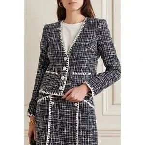 NEW Veronica Beard Bosea Tweed Cotton Blend Jacket Navy Multi 12
