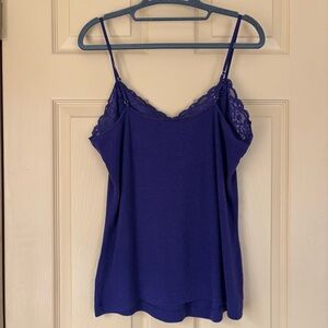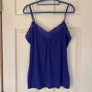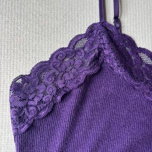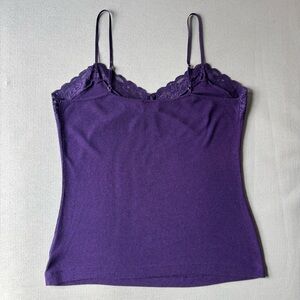 WORTHINGTON | Vintage Y2K Dark Purple Ribbed Knit Lace Babydoll Cami