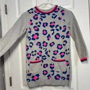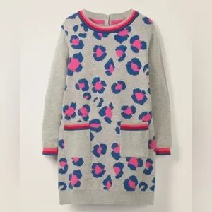 Mini Boden Girls Sweater Dress Animal Print Cheetah‎ Pockets Size 8-9