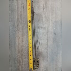 Vintage Gold Tone Owl Statement Large Articulared Art Pendant Necklace Art Deco