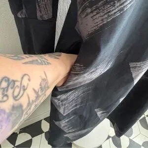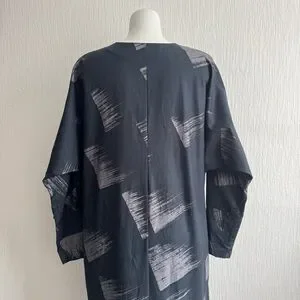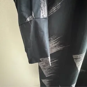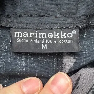 Vintage rare Marimekko Finland 1980s graphic print dress. Features side chest button detail and batwing sleeves. Side pockets. In overall amazing vintage condition. Black and grey in color.