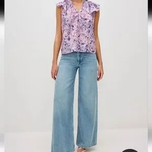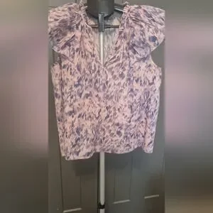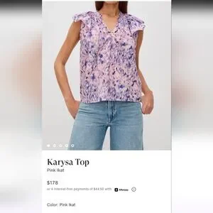 Rails Karysa Top in a beautiful Pink Ikat print. Lightweight 100% cotton blouse with flutter sleeves, V-neckline, and ruched back detail. Relaxed, easy fit—perfect for spring and summer!