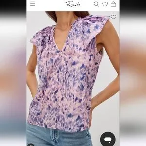 Rails Karysa Pink Ikat Flutter Sleeve Cotton Top Blouse V‑Neck Boho