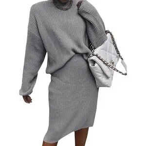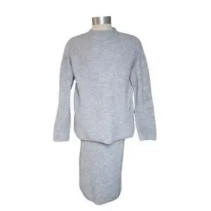 NWT Women's Medium Gray Mock Turtleneck Sweater Pull-On Skirt 2 Piece Set