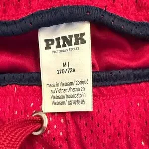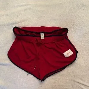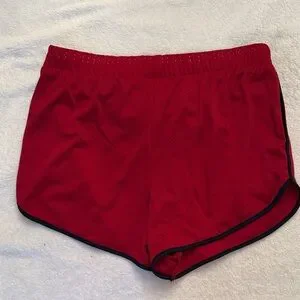 Vibrant red mesh shorts with sleek black trim. Comfortable drawstring waist.