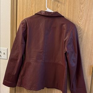 Classic burgundy leather blazer crafted for versatile wear. Very soft leather. I purchased from a different pre-loved website. It is real nice but a bit too big for me. The size is more of a M/L.