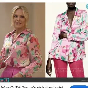 Zara Pink Floral Silky Button Up Blouse Size Medium