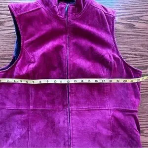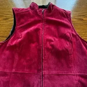 Stylish sleeveless vest. Rich burgundy color. Soft dark interior. Perfect for layering.