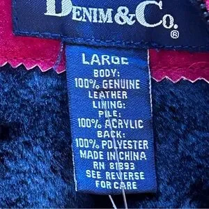 Denim&Co NWT Red Leather Faux Fur Lined Zip Vest Front Pockets Size L
