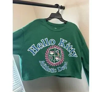 Hello Kitty Sanrio Athletic Cropped Crew Neck Kelly Green Tennis Sweater Sz XL