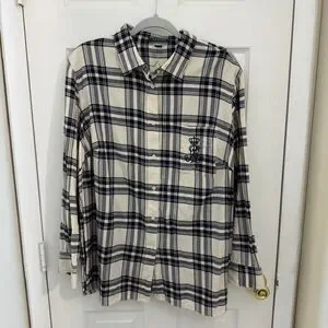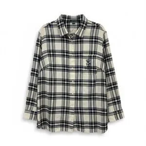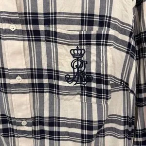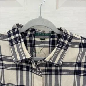 Lauren Ralph Lauren Crest Flannel Button Down Shirt Size Large Blue Plaid