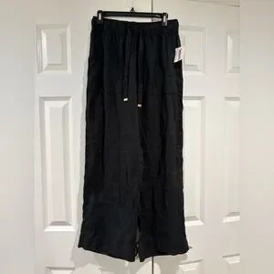 NWT Wide Leg Black Linen Pants Size S Beach Summer Classic