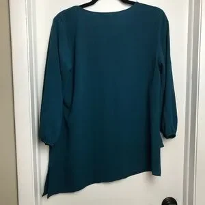 Apt 9 asymmetrical Top Blouse Size M Dark Turquoise Color Elastic Sleeve