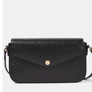 NWT Authentic Gucci Embossed Black Leather GG Mini Crossbody Purse