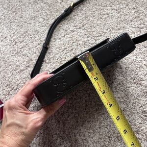 Crafted from luxurious black leather in Italy, with the iconic embossed GG monogram, this chic crossbody offers timeless style and everyday versatility.
