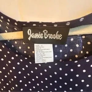 Jamie Brooke Navy Polka Dot Midi Dress | Size 14 | Rayon | Y2K Classic