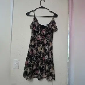 Bailey 44 Black Floral Ruffle Slip Mini Dress