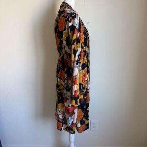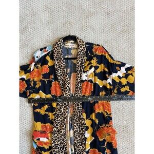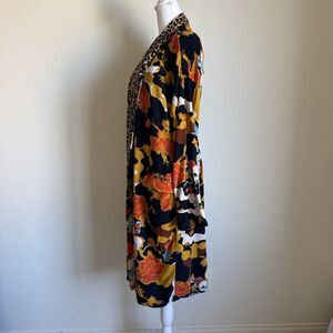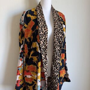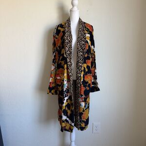 Free People Size S Wild Nights Duster Open Front Floral Print Leopard Trim Boho