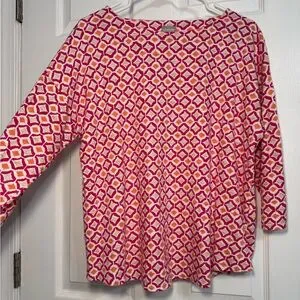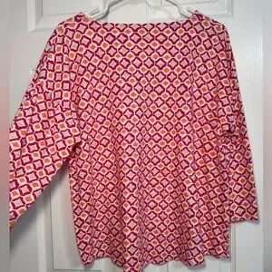 Chico's Pink Orange Geometric 3/4 Sleeve Top shirt Cotton Blend Pullover Size‎ 2
