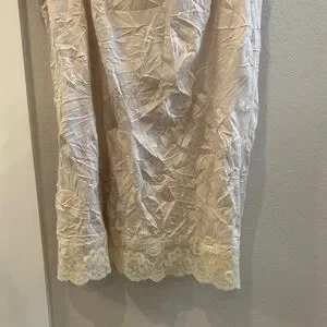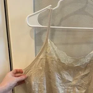 EUC Women’s Plus Size 1 Cream Lace Trim Beige Long Tank Top Crinkle Camisole
