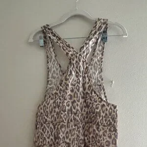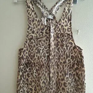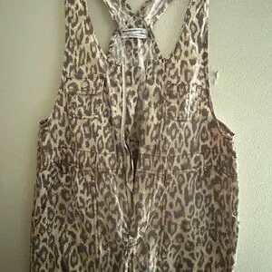 Urban Outfitters Camille Leopard Print Cheetah Cotton Zip Racerback Overalls NEW