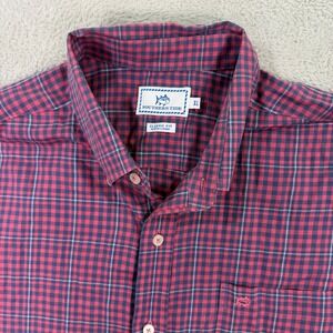 Southern Tide Mens XL Button Down Shirt Classic Fit Red Blue Gingham Long Sleeve