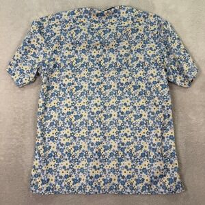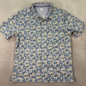 Toes on the Nose Mens XXL Button Front Shirt Blue Yellow Floral Aloha Surf EUC