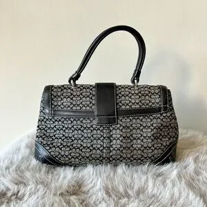 A timeless Coach Soho piece featuring the iconic signature βCβ monogram canvas with black leather trim and contrast stitching. Finished with the classic Soho buckle detail and structured silhouette that made this style a Y2K favorite.