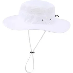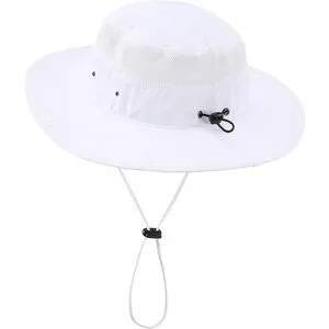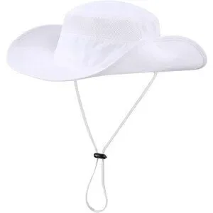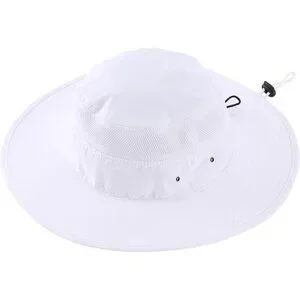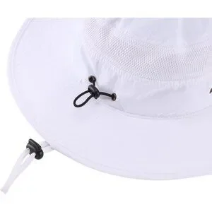 Unisex White 100% Polyester Wide Brim Boonie Mesh With Chin Strap Bucket Sun Hat