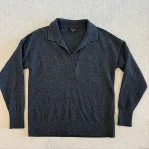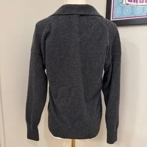 Quince Mongolian Cashmere Polo Sweater Charcoal Grey V-Neck Womens Medium