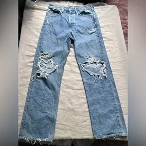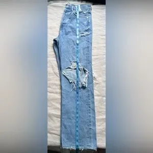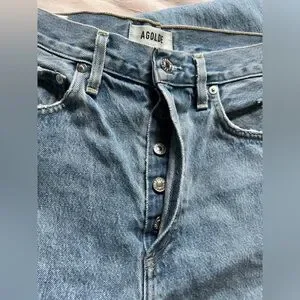 Agolde Blue Flare Wide Leg Jeans with Distressed Detailing