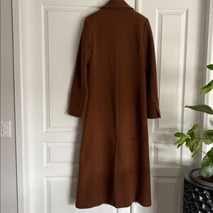A neat collar adds an element of retro appeal to this slim-fit, longline coat. Made from a soft, compact wool blend, it's soft and warm without being too heavy, perfect for layering over shirts and knitwear. It's cut to sit neatly on the calf, fastening with a single concealed button.
