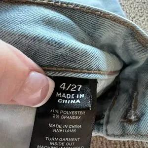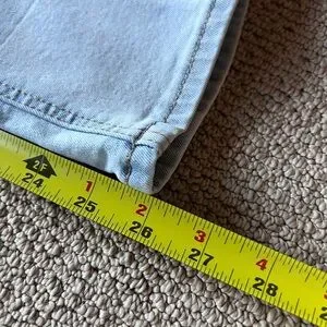 Two Frye denim jeans shown. One light blue wash. One dark blue wash. Leather Frye brand patches visible. Excellent condition! Measurements in photos.