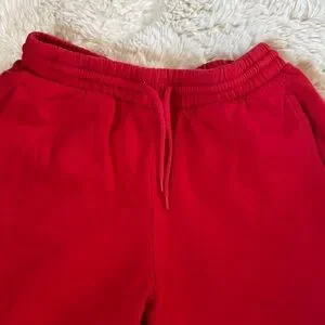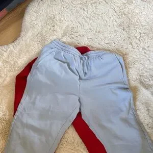 Comfortable and stylish women’s or could be kids sweatpants in vibrant red and baby blue. Perfect for everyday wear.