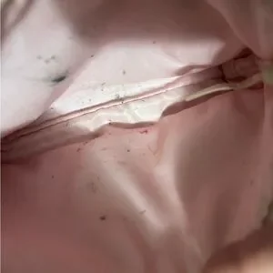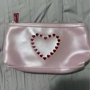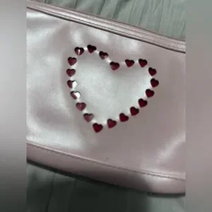 Chic and stylish pink women's bag with heart embellishments. Perfect for adding a touch of elegance to any outfit. This is vintage and shows wear. Markings on the inside.