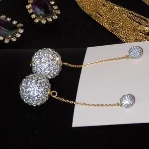 $99 price on tag is missing Razzle Dazzle crystal studded ball gold chain dangles. 2-3/8" x 15mm