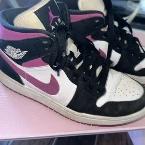 Wmns Nike Air Jordan 1 Mid Black/Cactus Flower-White Size 7.5